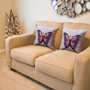Add a touch of elegance and nature-inspired beauty to your home decor with our Hand Embroidery Cushion Cover featuring a delicate Butterfly Motif. This exquisite cushion cover showcases intricate embroidery work on premium jute fabric, offering a blend of rustic charm and refined craftsmanship.