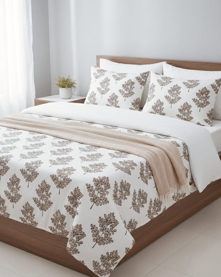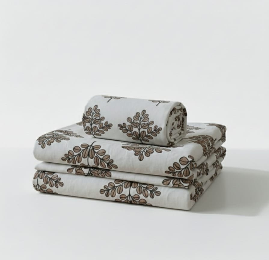 Purely handcrafted hand block printed king size bedsheet set of 6 consist of 1 bedsheet, 2 pillow covers, 2 cushion covers and one bed runner.