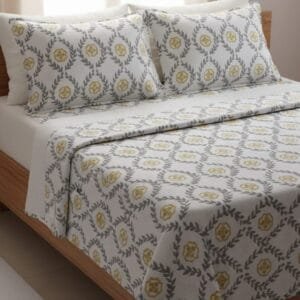 Design: Elegant Floral Hand-Printed Bedsheet
