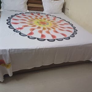To maintain the vibrancy and quality of the hand-painted designs, it is recommended to wash the bedsheet, and pillow covers in cold water with mild detergent. Avoid using bleach or harsh chemicals and air dry or tumble dry on a low setting to preserve the fabric and the integrity of the artwork.