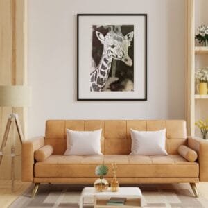 Why It’s Special: This painting is not just a visual delight but also a testament to the artist’s skill and attention to detail. The lifelike representation of the giraffe, combined with the choice of medium, makes it a captivating piece that can enhance any space. Whether you choose to display it with or without a frame, this artwork is sure to draw admiration and add a touch of sophistication to your surroundings.