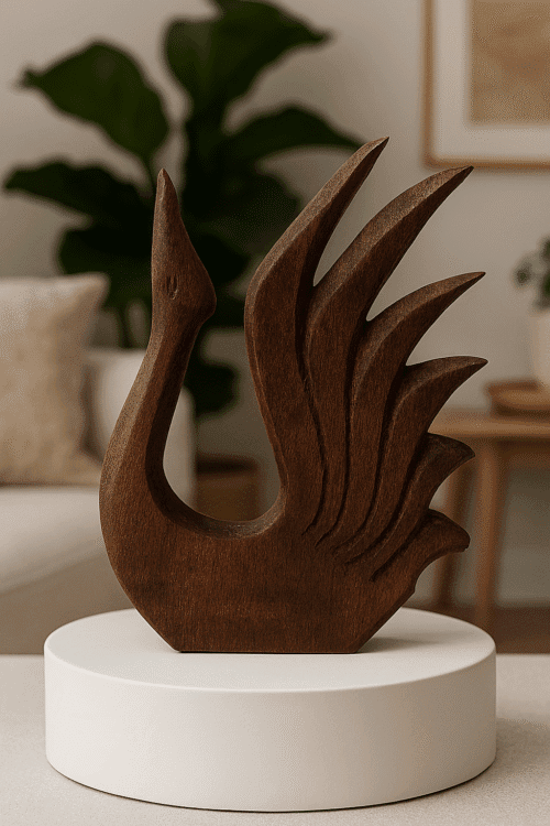 Bring elegance and tradition into your space with this handcrafted walnut wood sculpture by Art & Craft with Pratima (COLOREALM). Measuring 5 inches in height, 3.5 inches in width, and 1 inch thick, this compact yet captivating piece is ideal for desks, shelves, and small display corners. Its minimalistic yet artistic form reflects refined craftsmanship, making it perfect for both home and office decor. Designed for lovers of slow art and eco-conscious aesthetics, this sculpture adds warmth and authenticity to modern interiors.